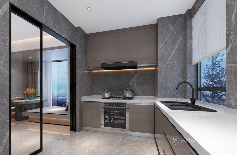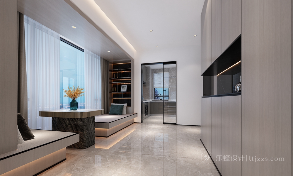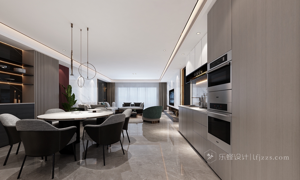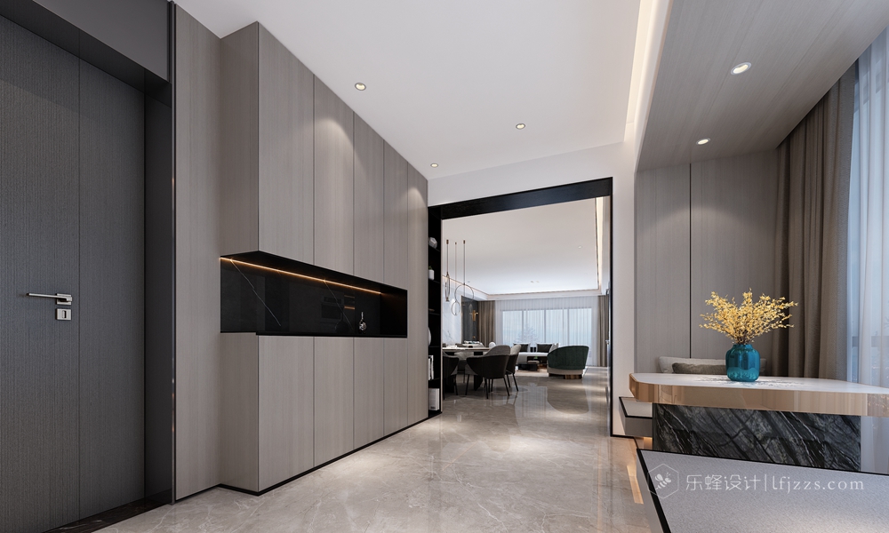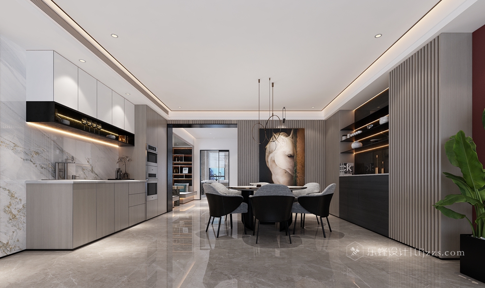 該案例位于南山后海的海景房,景色優(yōu)美宜人,窗外就是海景,晴朗的天氣直接就能看到香港。屋主經(jīng)營(yíng)著某貿(mào)易集團(tuán),經(jīng)常去往意大利等歐洲國(guó)家,對(duì)生活的品質(zhì)及設(shè)計(jì)的要求非常高,曠闊的眼界及細(xì)致的要求讓這套案子不會(huì)平凡。作為一個(gè)五年居住周期的安排,設(shè)計(jì)師考慮的是當(dāng)下最新潮的理念:意式輕奢風(fēng)。整體空間看上去簡(jiǎn)單,但處處透露出奢華,木飾面、大理石、不銹鋼的有機(jī)結(jié)合,再配以意大利FENDICASA的家具,讓整個(gè)空間簡(jiǎn)約而不簡(jiǎn)單,低調(diào)內(nèi)涵。