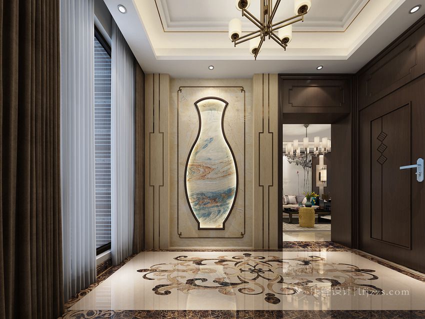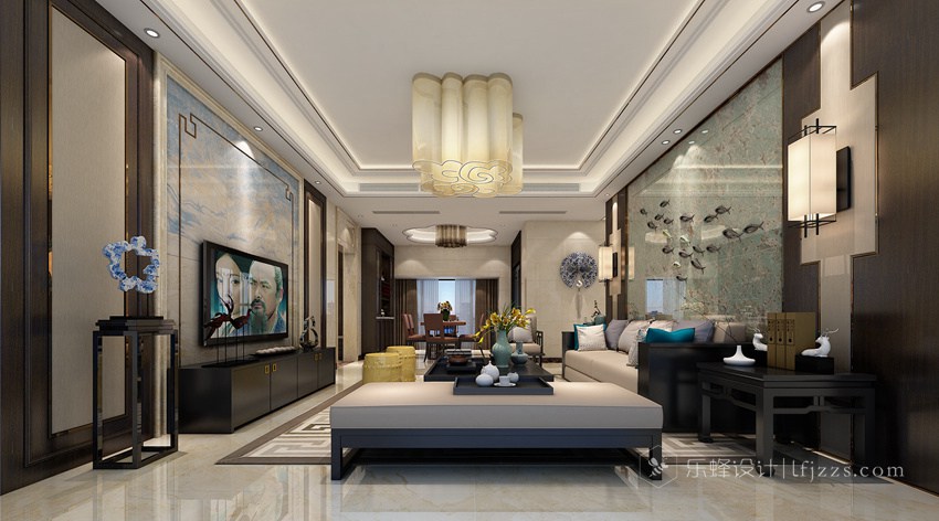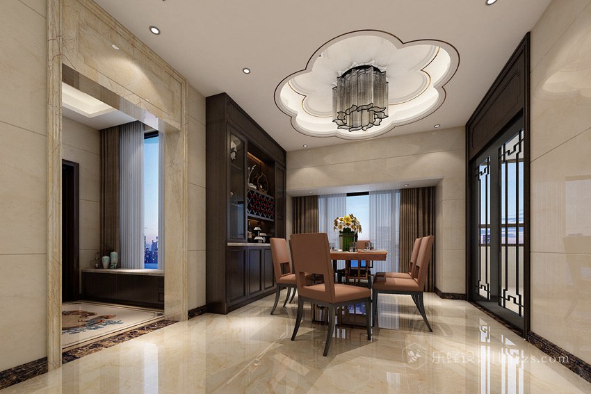 本案是新中式風(fēng)格,具有中國傳統(tǒng)風(fēng)格文化意義在當(dāng)前時代背景下的演繹,是對中國當(dāng)代文化充分理解基礎(chǔ)上的當(dāng)代設(shè)計。新中式是傳承傳統(tǒng)中式風(fēng)格的精髓,通過與現(xiàn)代潮流的對話碰撞而產(chǎn)生的創(chuàng)新。