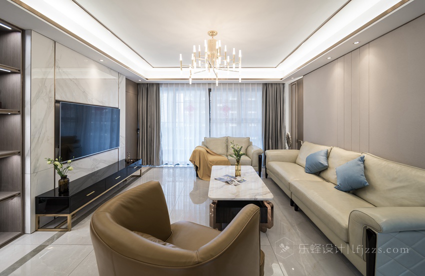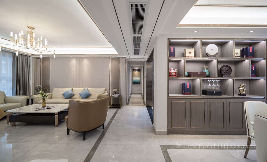 在視覺上舍棄張揚(yáng),通過對(duì)線條與色塊的巧妙應(yīng)用,營造出輕松的空間氛圍,傳遞“輕奢華、新時(shí)尚”的生活理念。