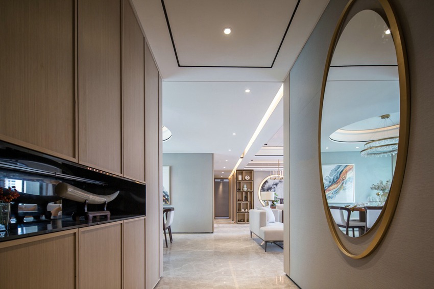 現(xiàn)代港式裝修,背景墻的精心設(shè)計是整個空間的焦點。客廳背景墻面采用灰色拉絲鏡面和白色大理石搭配,沙發(fā)背景和其他墻面全部采用咖色硬包,淺色皮質(zhì)沙發(fā)搭配局部跳色的裝修配飾,裝飾掛畫,使空間不太單調(diào),客廳感覺寬闊而不空曠,讓人感到?jīng)]有拘束和束縛,這樣的房子不僅住的舒適,還追求個性。