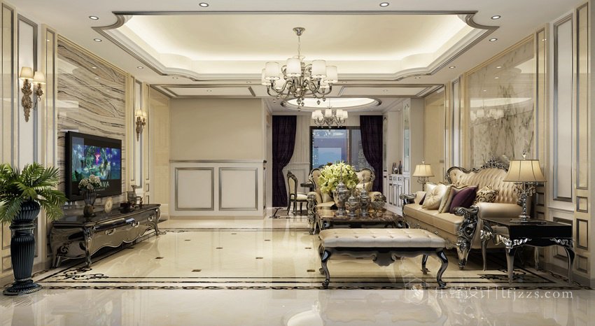 本案是混搭風(fēng)格,從整體到局部,精雕細(xì)琢,鑲花刻金都給人一絲不茍的印象。一方面保留了材質(zhì)、色彩的大致風(fēng)格,仍然可以很強(qiáng)烈地感受傳統(tǒng)的歷史痕跡與渾厚的文化底蘊(yùn),同時(shí)又摒棄了過于復(fù)雜的肌理和裝飾,簡化了線條。