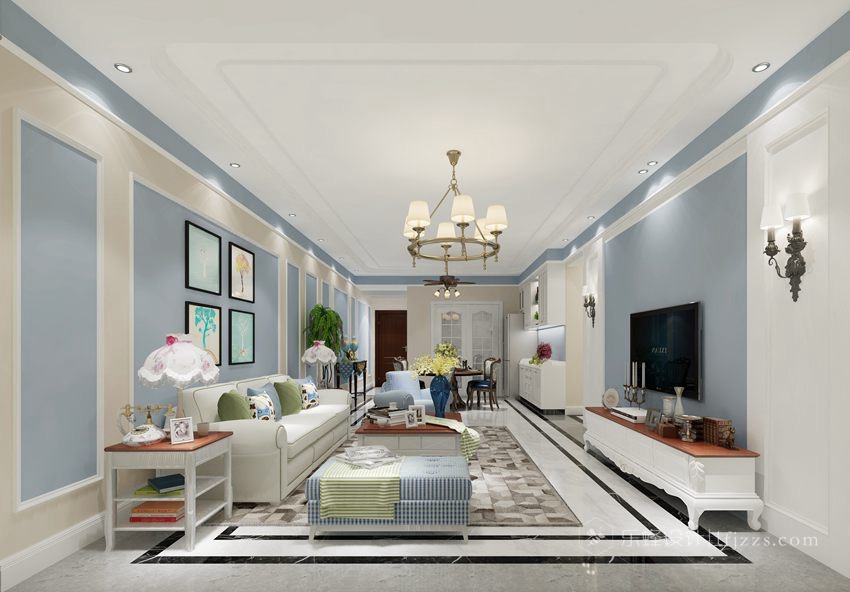方案以整體空間更加開闊為主,背景墻面裝飾采用了經(jīng)典的壁爐造型,突出整個空間的氛圍感而其他地方則選擇乳膠漆為主,在特定位置點綴不同的顏色,配上美式的家具和燈具,突出風格氛圍。