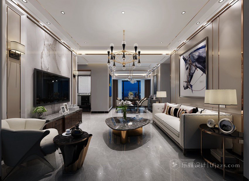 客廳背景墻面采用灰色拉絲鏡面和白色大理石搭配,沙發(fā)背景和其他墻面全部采用咖色硬包,淺色皮質(zhì)沙發(fā)搭配局部跳色的裝修配飾,裝飾掛畫,使空間不太單調(diào),客廳感覺寬闊而不空曠,讓人感到?jīng)]有拘束和束縛,這樣的房子不僅住的舒適,還追求個性。