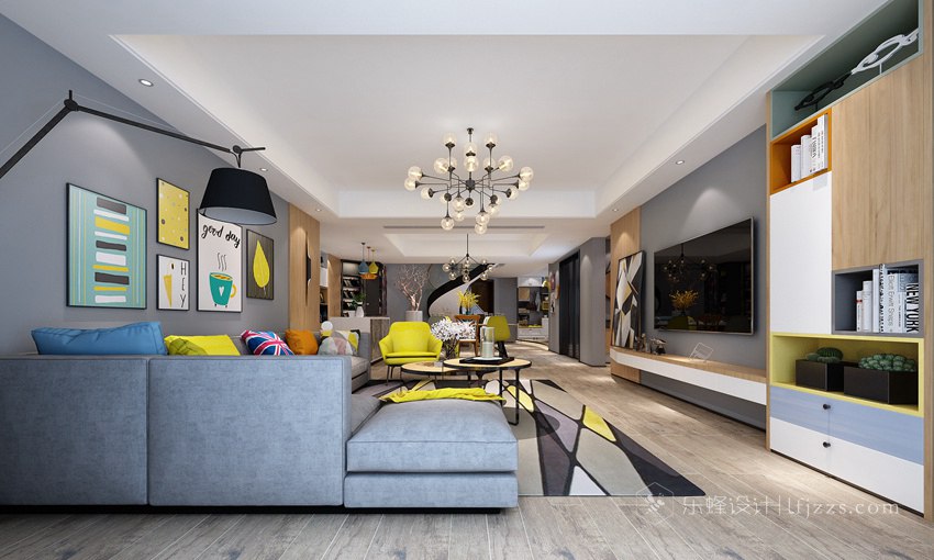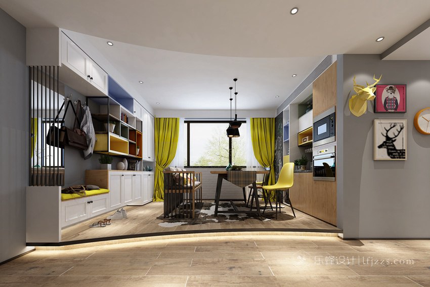 北歐風(fēng)格以淺色為代表,整體感舒適自然,同現(xiàn)代風(fēng)格有著極大的相似,頗受現(xiàn)代年輕人的喜愛(ài)。北歐風(fēng)格的裝修沒(méi)有過(guò)多冗雜的裝飾和花紋,用一種最簡(jiǎn)單、直接、功能化且貼近自然的線(xiàn)條來(lái)表現(xiàn)其寧?kù)o的北歐風(fēng)情。本案以淺灰色為基調(diào),搭配白色、原木色等輔助色,以少量純色作為點(diǎn)綴,整體傾向于淺色系,給人一種干凈明朗的感覺(jué)。