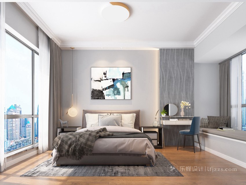 主臥的大全景窗,完美呈現(xiàn)中層住宅的采光優(yōu)勢(shì),還能將城市夜景一攬入懷,等到夜幕彌漫天際,這個(gè)城市將會(huì)在窗外展現(xiàn)出它的另一番柔情,賞著如畫般的景,一天工作后的身心疲憊仿佛融在了涼柔的夜風(fēng)里。