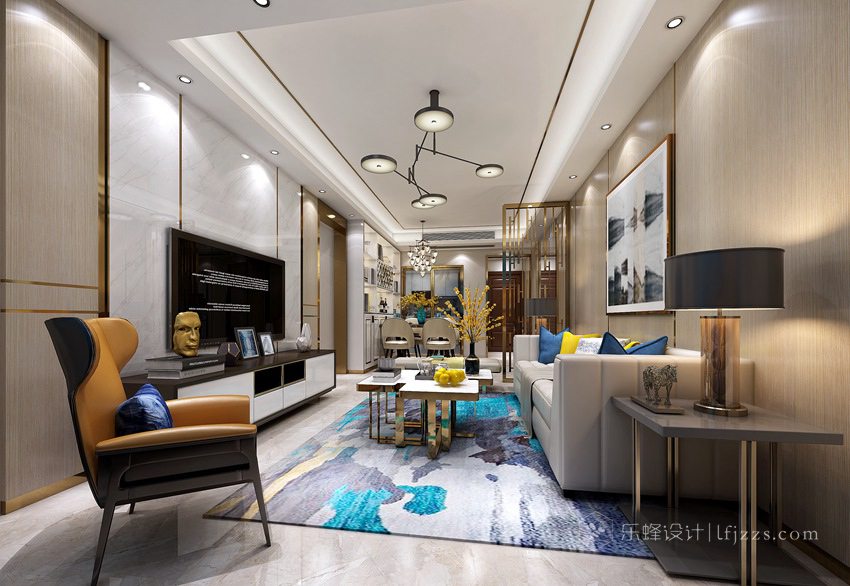 本案空間造型設(shè)計(jì)簡(jiǎn)約流暢,運(yùn)用簡(jiǎn)潔而非對(duì)稱(chēng)的直線和不銹鋼線條來(lái)塑造空間的立體感。色彩簡(jiǎn)約,空間以白色為主基調(diào),摒棄傳統(tǒng)的吊燈,使用點(diǎn)光源的筒燈,使燈光更有層次感,整個(gè)空間的燈光也更柔和。