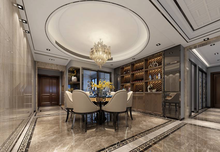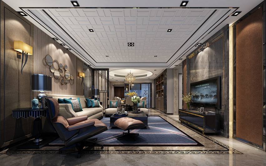 本案整體以黑白灰為導(dǎo)線,通過(guò)色彩的對(duì)比以及幾何圖案的運(yùn)用,石材與金屬的碰撞,運(yùn)用新古典的設(shè)計(jì)手法營(yíng)造奢華氛圍,摒棄虛無(wú)的繁雜,突出“沉穩(wěn)”的特質(zhì);將古典歐式元素與現(xiàn)代設(shè)計(jì)手法相結(jié)合,通過(guò)現(xiàn)代的設(shè)計(jì)手法,使空間在擁有華麗大氣的同時(shí)又省去了古典歐式的過(guò)分繁復(fù)。幾分“俏皮”的藍(lán)色以及不拘一格的軟裝點(diǎn)綴。使整個(gè)空間設(shè)計(jì)高貴大氣,彰顯客戶高貴的生活格調(diào)及品位。