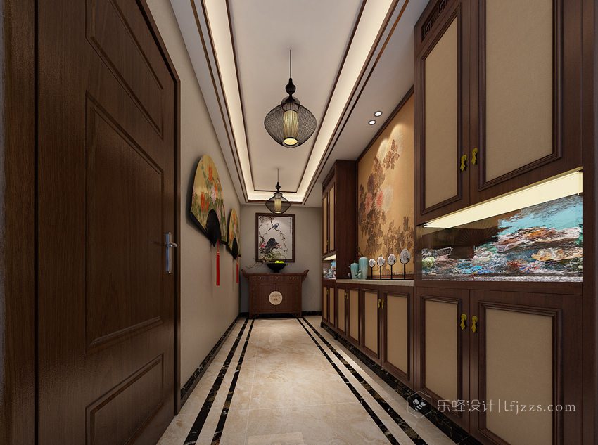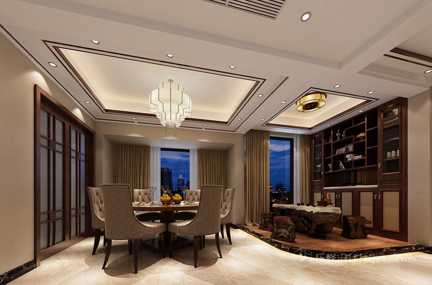 本案將傳統(tǒng)的中式風(fēng)格融入現(xiàn)代生活,簡(jiǎn)潔硬朗的線條及耐人尋味的內(nèi)斂間卻內(nèi)藏豐富意涵。摒棄古典中式繁瑣的門窗雕格造型,簡(jiǎn)潔的造型展現(xiàn)中式家居的層次之美,營(yíng)造出移步換景的裝飾效果。