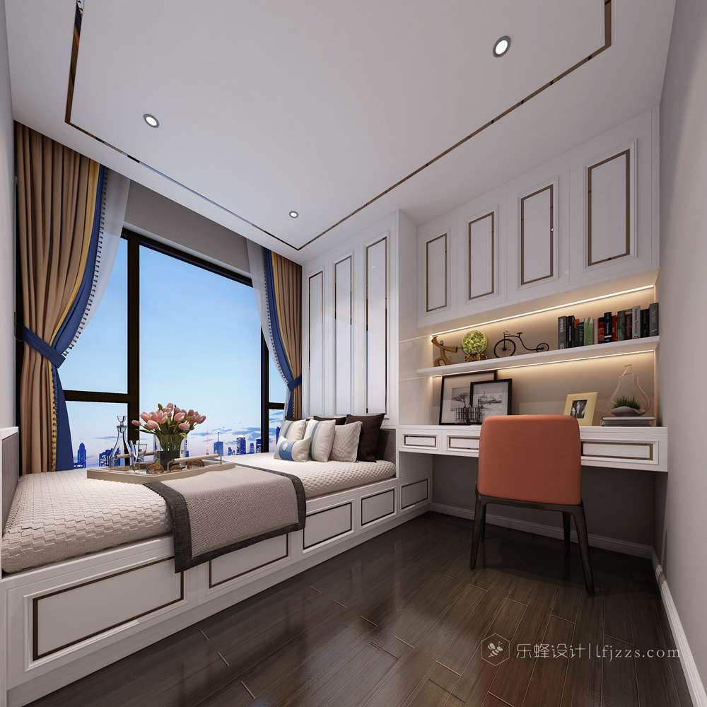 次臥在造型設(shè)計上更注重收納,榻榻米下方是抽拉式的儲物柜,床頭也設(shè)置了壁柜和置物架。純白色的回型面板,結(jié)合金屬質(zhì)感的不銹鋼線條,別有一番港式簡約的味道。