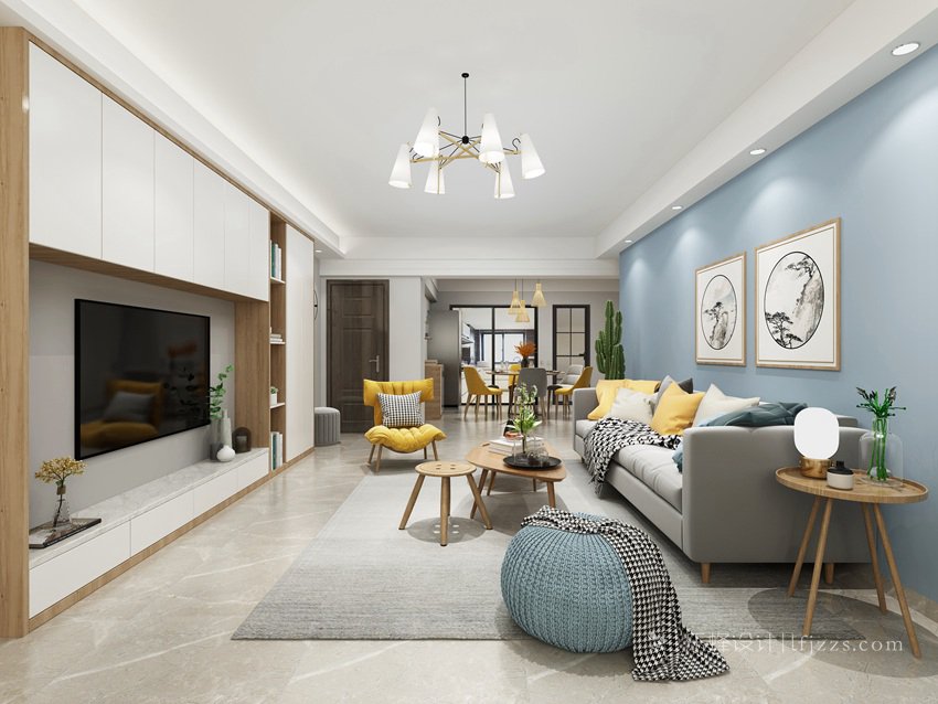 業(yè)主原房因樓層較低,采光很差。原房做了很多復雜的吊頂,整個空間顯得擁擠又壓抑。后通過更換門窗,擴大門洞,拆除部分墻體家私,簡化硬裝造型等方法使空間更加敞亮。同時配以北歐風格清新明快的大色調,整體空間營造出一種自然休閑的氛圍。