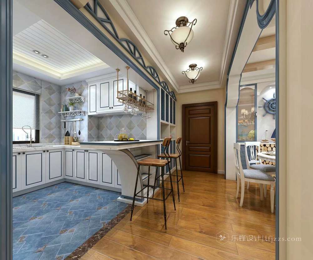 設(shè)計(jì)來源于生活,色彩詮釋于視覺,用心感悟自然,地中海風(fēng)格讓人有一種心曠神怡的感覺,仿佛置身于海邊,白云藍(lán)天與藍(lán)海給人解脫,放松心情,從一天工作中回來舒適身心,暫與世喧囂隔絕。