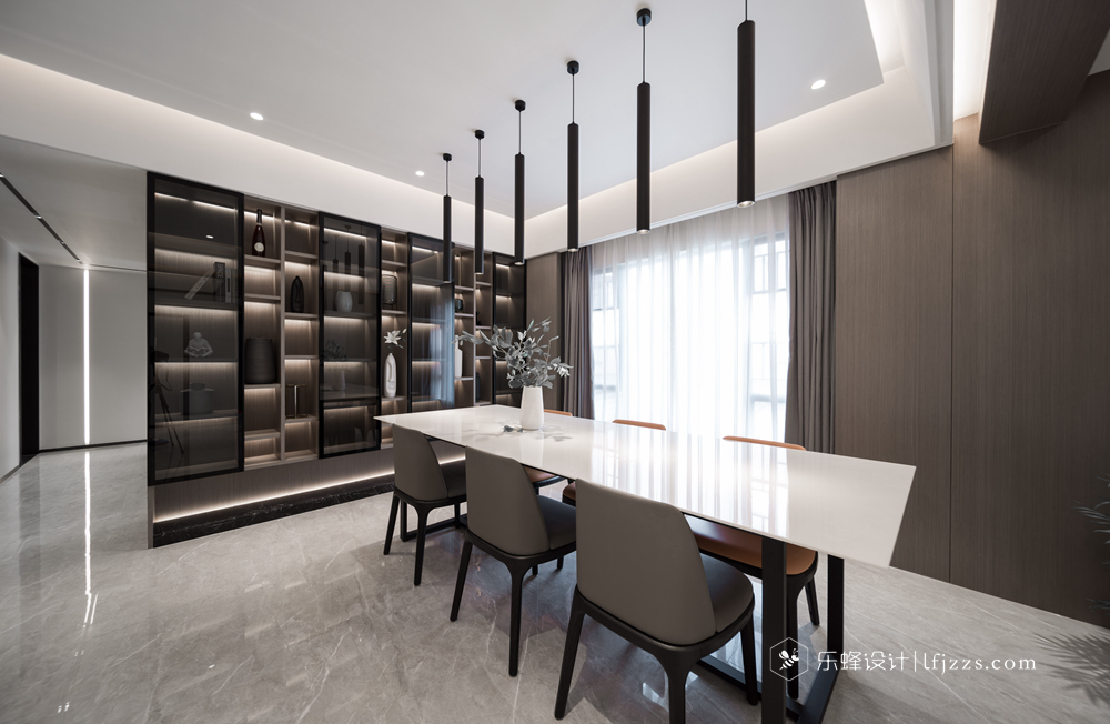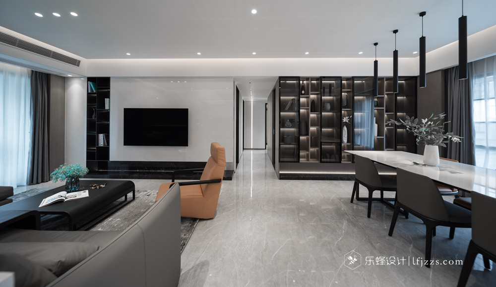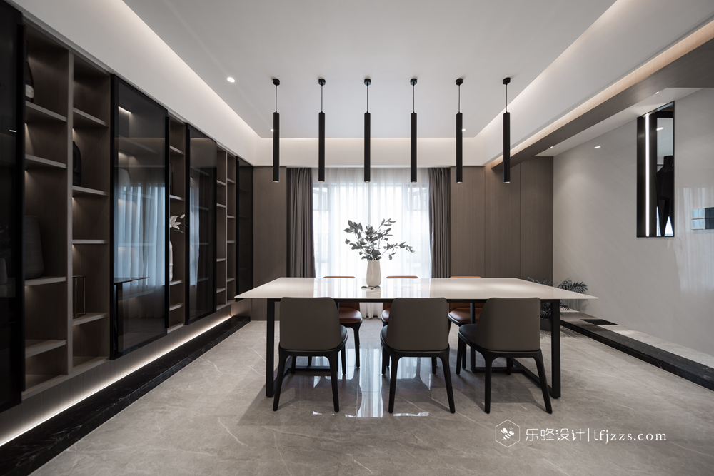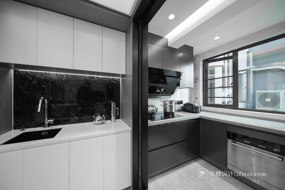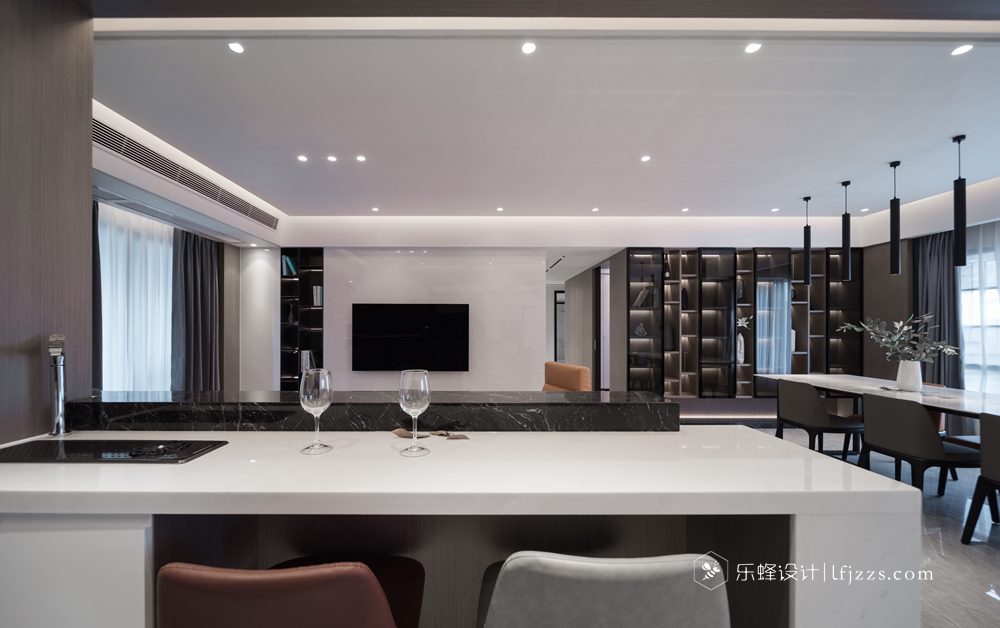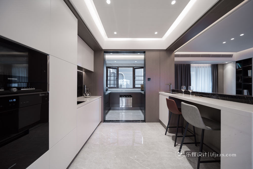 色彩簡(jiǎn)約,空間以白色為主基調(diào),摒棄傳統(tǒng)的吊燈,使用點(diǎn)光源的筒燈,使燈光更有層次感,整個(gè)空間的燈光也更柔和。再搭配墻磚的質(zhì)感和高純度色彩,來(lái)引入一種時(shí)尚感。