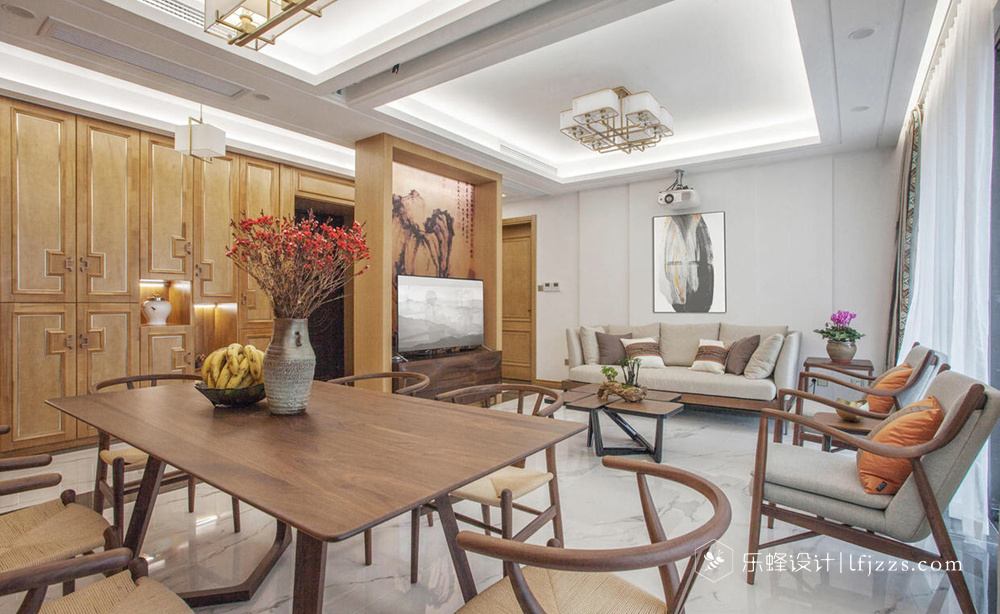 將新中式風(fēng)格細(xì)化成細(xì)小的元素,再以元素的方式細(xì)分后表現(xiàn)出來,這種分解方式,使得每一處設(shè)計都是一個看點,即獨立成型又融入其中,讓設(shè)計氣勢宏偉、磅礴,現(xiàn)代設(shè)計手法的引入也避免了設(shè)計顯得老陳,這也正好體現(xiàn)了中國文化海納百川的大氣。