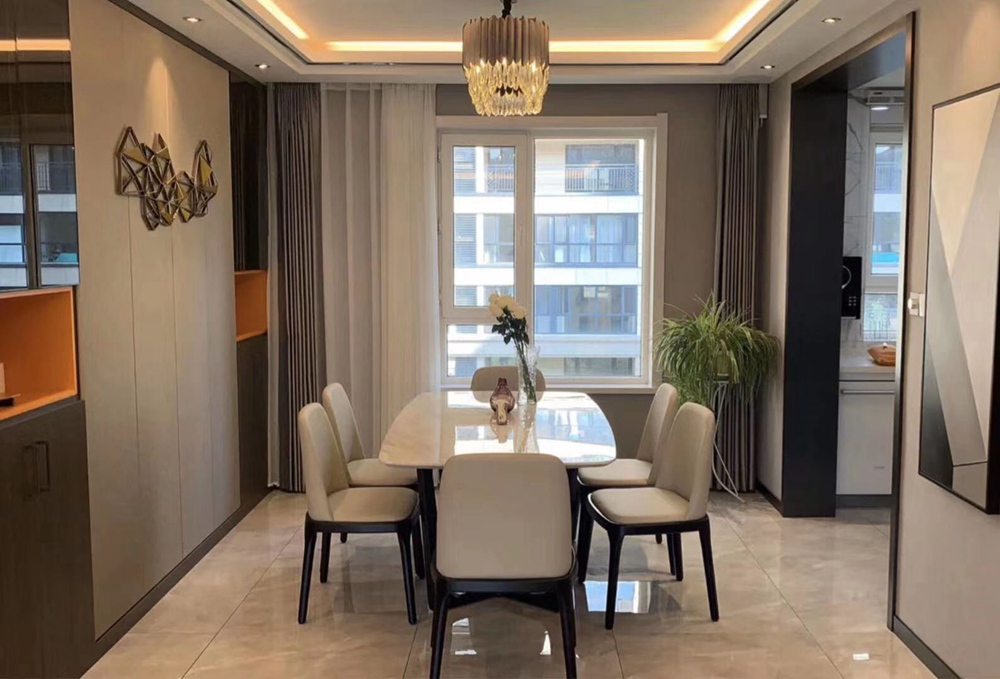 本案空間造型設(shè)計(jì)簡(jiǎn)約流暢,運(yùn)用簡(jiǎn)潔而非對(duì)稱的直線和不銹鋼線條來塑造空間的立體感。色彩簡(jiǎn)約,空間以白色為主基調(diào),摒棄傳統(tǒng)的吊燈,使用點(diǎn)光源的筒燈,使燈光更有層次感,整個(gè)空間的燈光也更柔和。