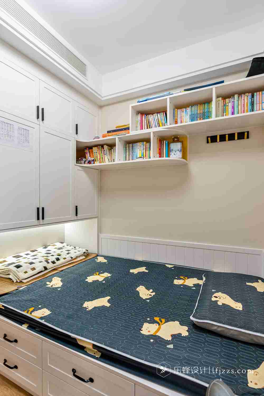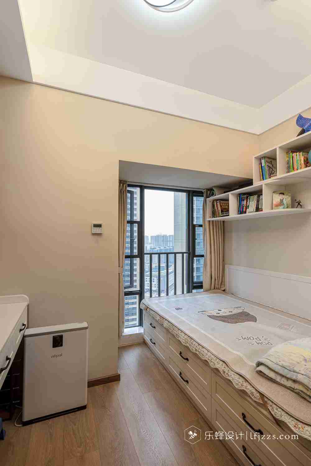 兒童房旁邊做了一個(gè)簡單的小書桌,可以平時(shí)在孩子在室內(nèi)安安靜靜的學(xué)習(xí),床上也做了一些柜子,方便放平時(shí)的一些書籍