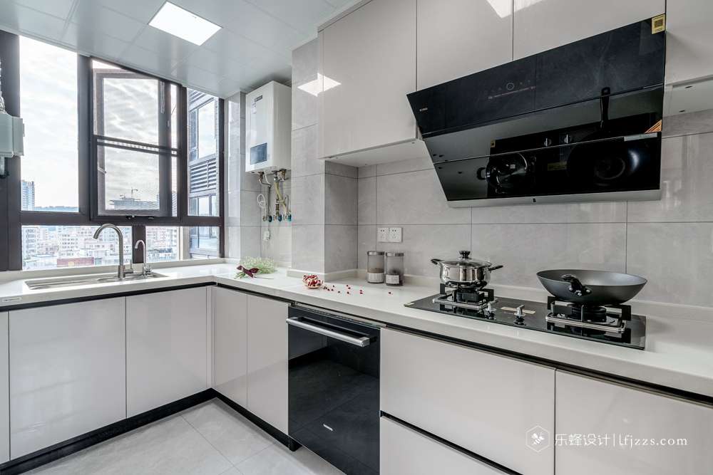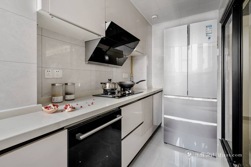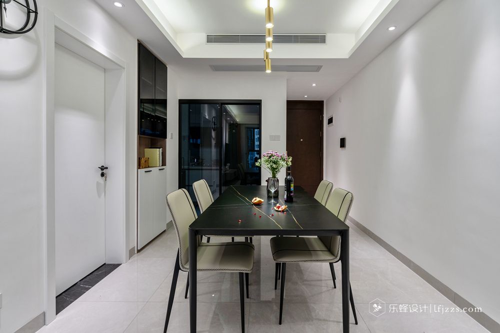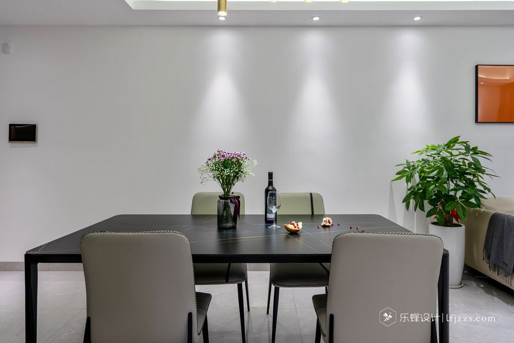 色彩簡(jiǎn)約,空間以白色為主基調(diào),摒棄傳統(tǒng)的吊燈,使用點(diǎn)光源的筒燈,使燈光更有層次感,整個(gè)空間的燈光也更柔和。再搭配墻磚的質(zhì)感和高純度色彩,來(lái)引入一種時(shí)尚感。