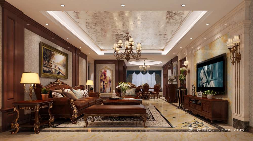 客廳、餐廳都是為了招待來賓和宴請朋友用的。在材料選擇上多傾向于較硬、光挺、華麗的材質(zhì),古典中帶有一點隨意,摒棄了過多的繁瑣與奢華,兼具古典主義的優(yōu)美。