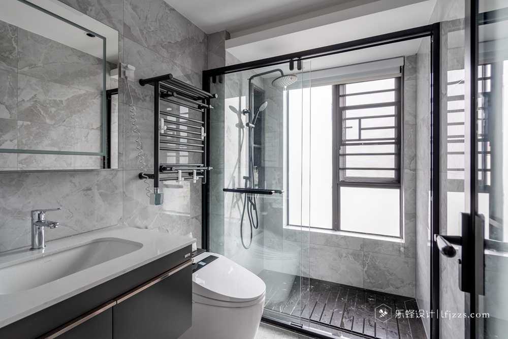 衛(wèi)生間,沐浴區(qū)用玻璃分割,做到干濕分離,用淺灰色大理石鋪面,簡約造型的潔具,整體雅白的衛(wèi)生間布置也顯得干凈而舒適,讓狹小的空間多了些許精致感。