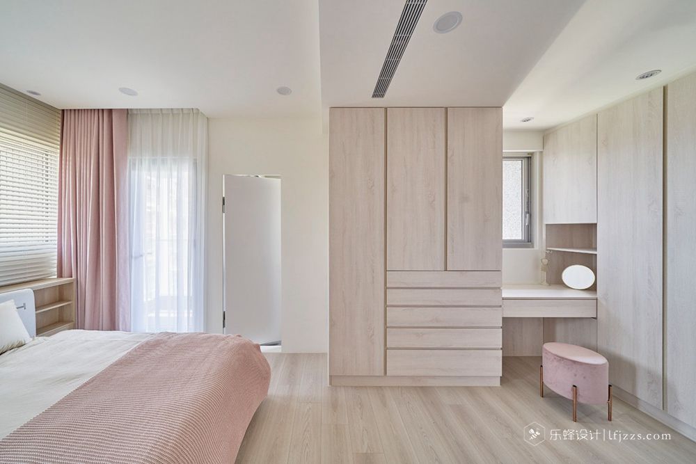 主臥的門都是用了隱形門的樣式,為了迎合這個(gè)空間,同時(shí)也是為了這個(gè)空間的美觀,在臥室里面做了超多的收納,但是空間看起來并沒有那么的凌亂。