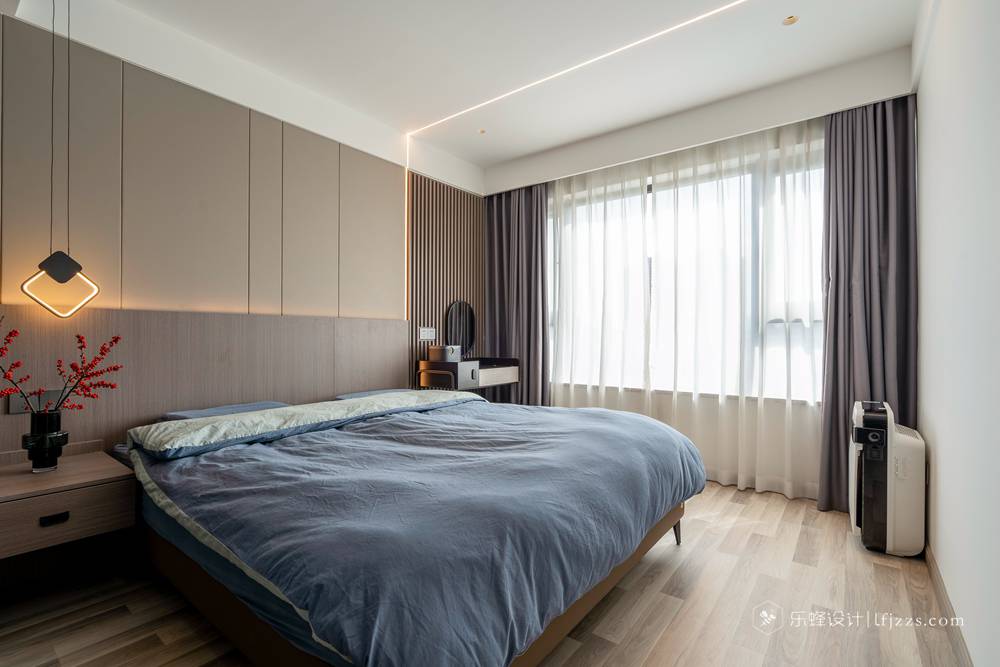 臥室,以低飽和度的柔和配色營(yíng)造干凈、純粹、溫馨的私域環(huán)境。床頭精致的壁燈與燈帶呼應(yīng),豐富空間層次感。