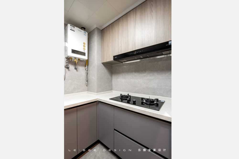 廚房空間因為將冰箱外置出來,可以有更多的空間來布置U型的櫥柜儲物,空間上除了普通的隔層儲物,也增加了碗籃和拉籃整體的儲物空間分配形式更加多樣,儲物功能也能更好的發(fā)揮出來