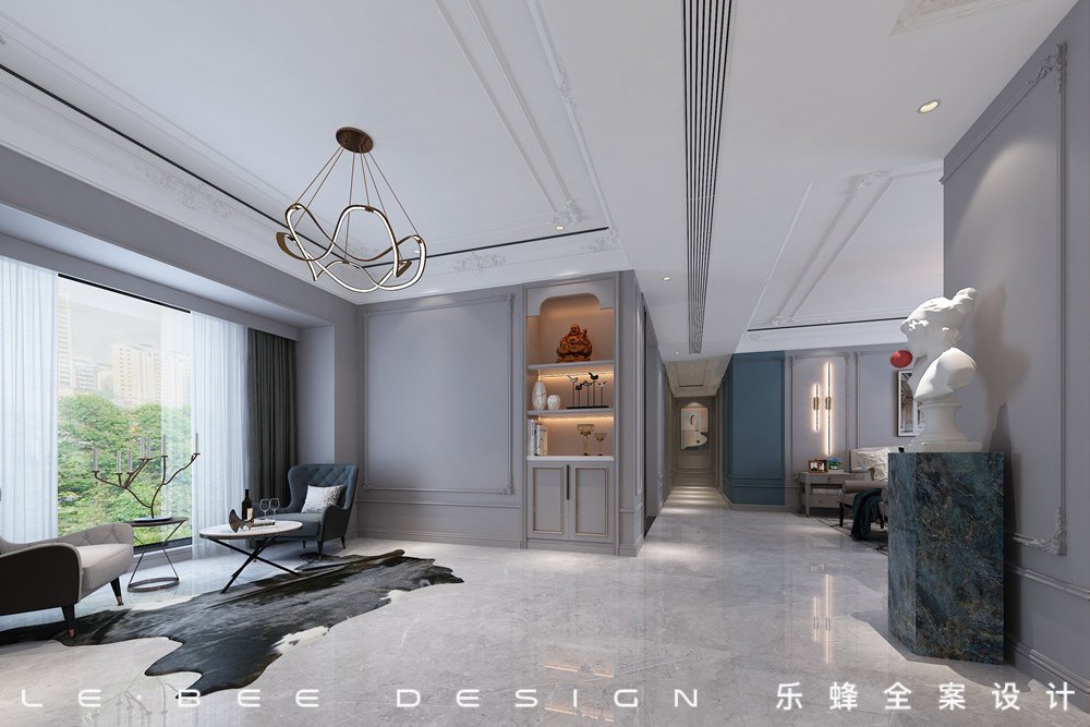 本案的設(shè)計風(fēng)格以純凈的現(xiàn)代簡約風(fēng)格為主,運用虛實結(jié)合的方法?,體現(xiàn)簡潔、明快、大氣、國際化的人居環(huán)境。優(yōu)美的線條、精致的家私、純粹的色彩,其間的典雅與奢華,相信是空間所欲達(dá)到的極致。在這個空間中強了氣韻與質(zhì)感及浪漫的柔性美,融合國人的觀念與現(xiàn)代、新穎,彰顯其氣勢與唯美的氛圍,并在繁復(fù)中體會浪漫與幽雅,亦纏繞在玲瓏之美中。