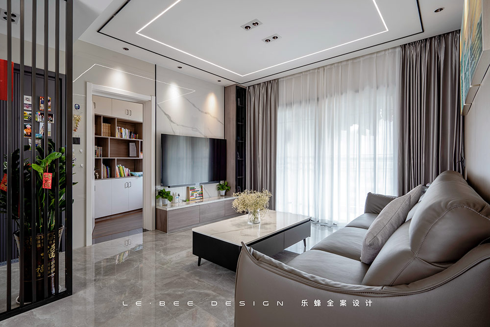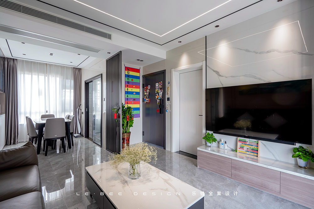本案屬于新房裝修,在前期規(guī)劃上,格局沒(méi)有太多的變化,大部分的空間都比較方正,唯獨(dú)入戶前的區(qū)域和入戶旁邊的房間屬于異形空間設(shè)計(jì)方面改動(dòng)了廚房門的開(kāi)門位置,在餐廳和衛(wèi)生間的共用墻體中,把墻體做成L型的,冰箱內(nèi)嵌進(jìn)去;過(guò)道改動(dòng)墻體增加收納。