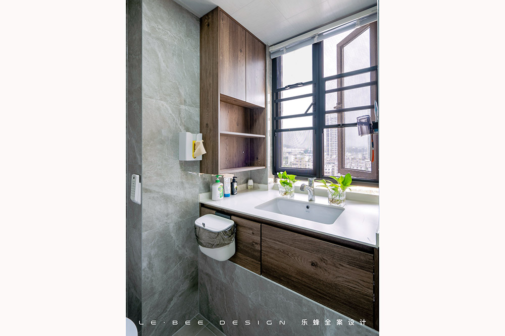 主臥衛(wèi)生間由于空間限制,所以設(shè)計(jì)師巧妙地將洗手臺(tái)設(shè)計(jì)到了飄窗。衛(wèi)生間搭配了一面時(shí)尚基調(diào)的灰色墻地磚,整個(gè)空間格外時(shí)尚清潔,更顯細(xì)節(jié)......