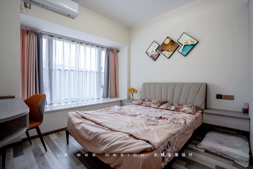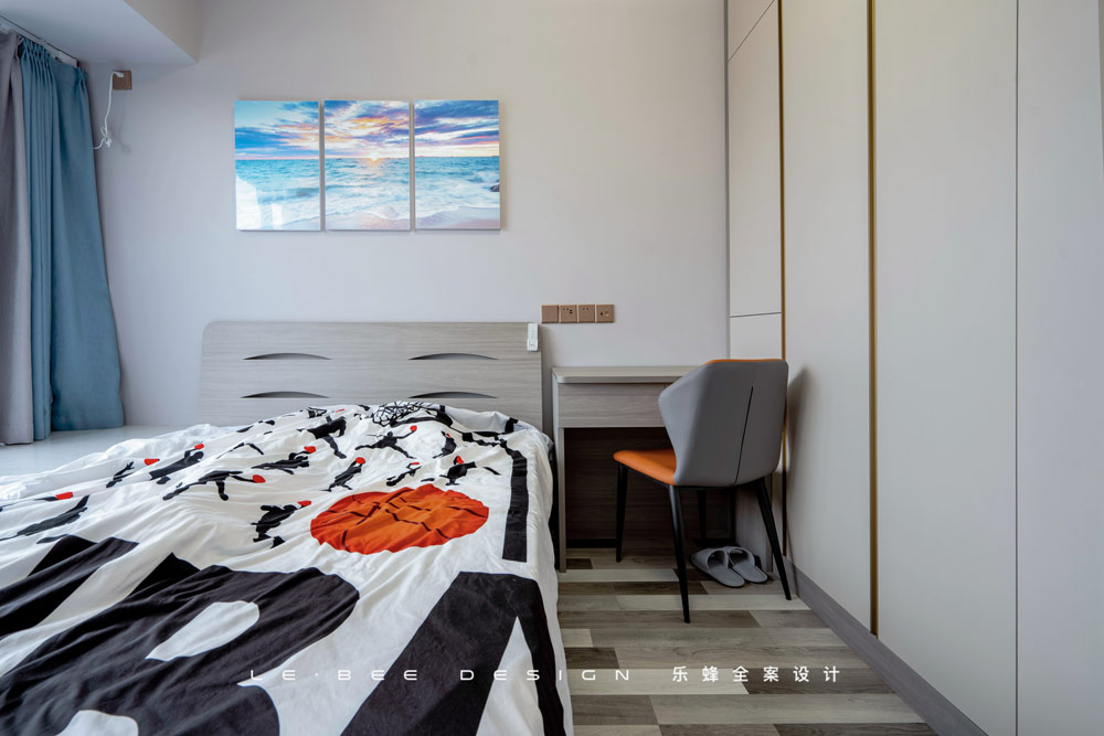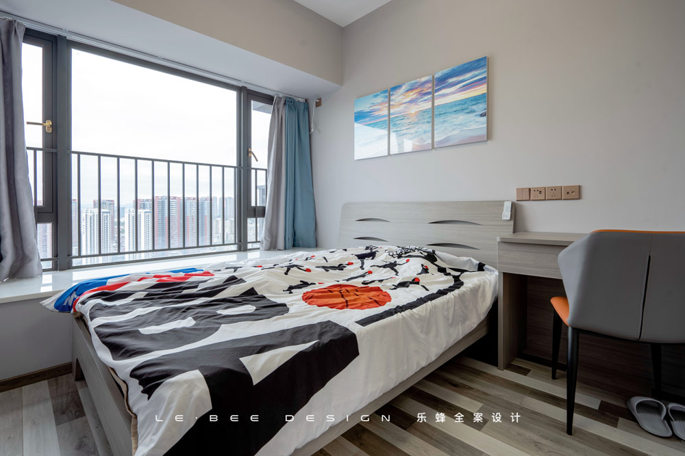 次臥是家里的男生房,采光充足,采用定制家裝,顏色搭配統(tǒng)一且和諧。
