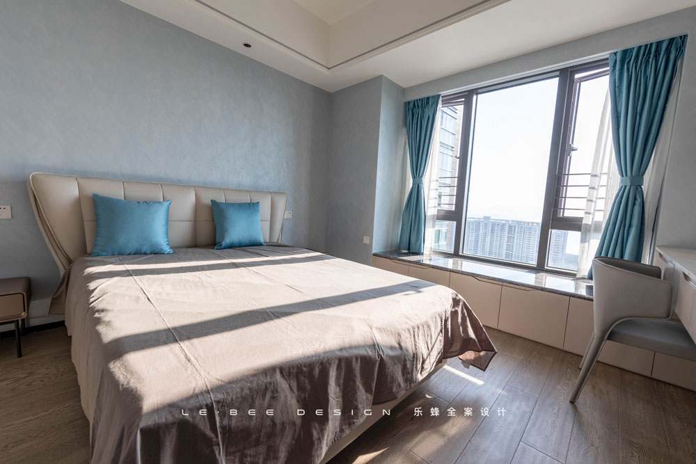 次臥添加了藍(lán)色元素,清新氣息躍然而出。