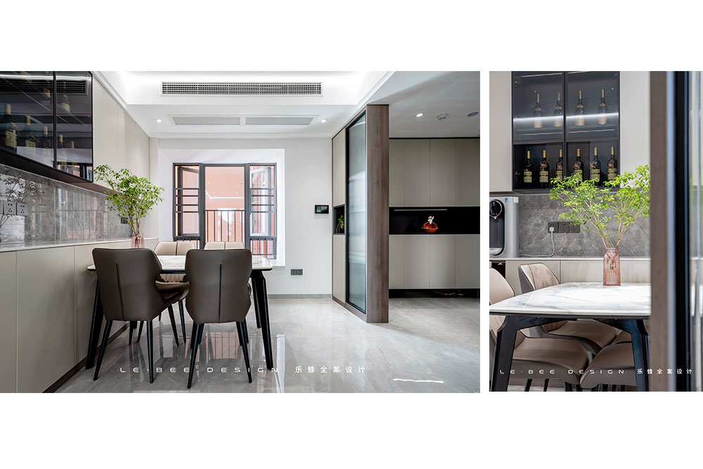 餐廳定制了一組餐邊柜,增加收納空間的同時又能夠作為展示使用,這對于喜歡喝酒和收藏酒的屋主來說是很棒的設(shè)計。