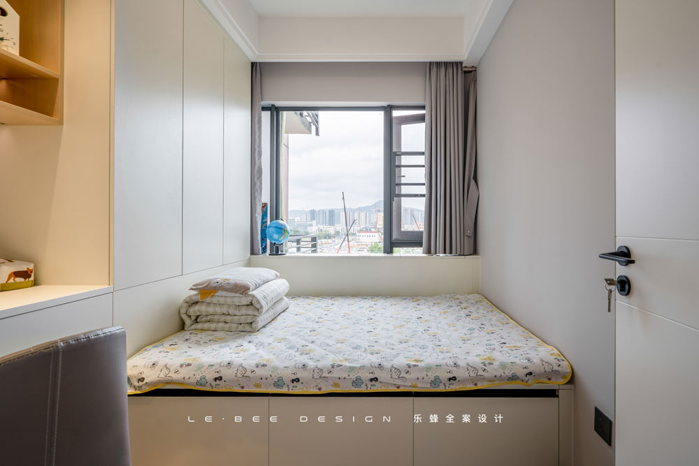 連接榻榻米設(shè)計了書桌和書架,是輕松快樂的學(xué)習(xí)角。