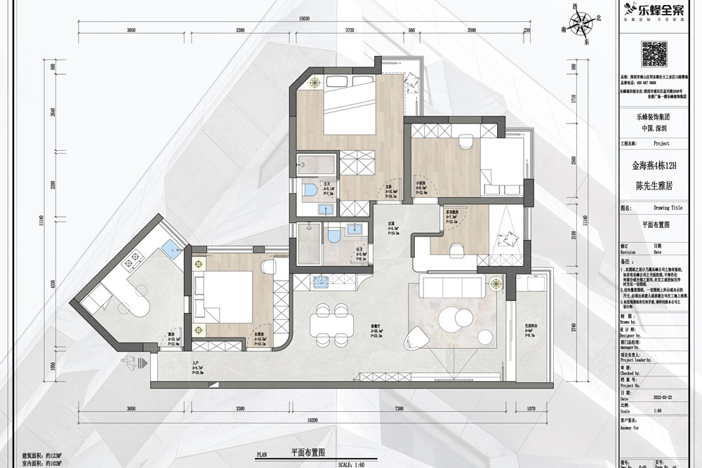 | 樓盤名稱:金海燕 | 案例戶型:4房2廳 | 案例面積:123平米 |