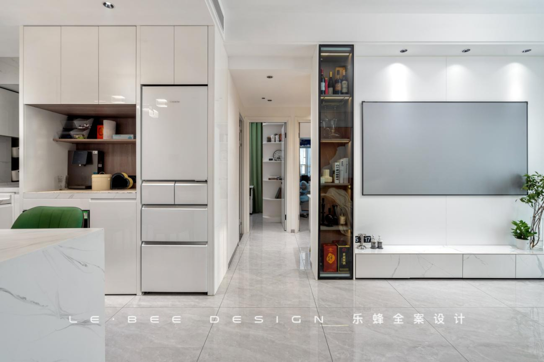 創(chuàng)新設(shè)計(jì)給餐廳帶來(lái)更亮眼的格局改造,餐廳放棄了傳統(tǒng)的獨(dú)立餐桌設(shè)計(jì),而是選擇餐桌和隔斷柜體結(jié)合,餐廳和廚房之間形成了更加筆直的動(dòng)線,沒(méi)有迂回,生活方式進(jìn)一步現(xiàn)代化。