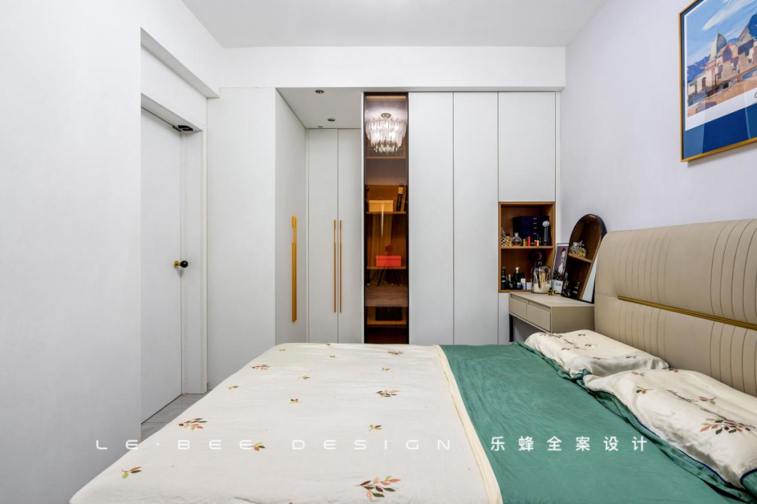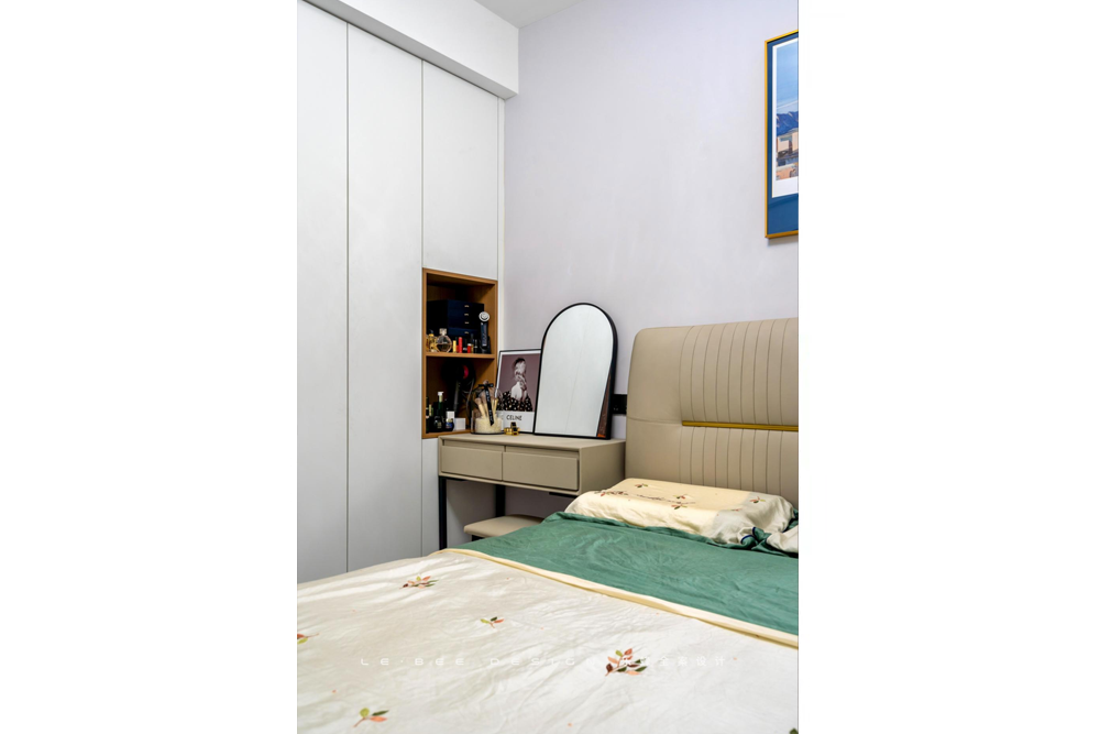 主臥風(fēng)格更加清新田園,同樣沒(méi)有采取深色作為背景,在軟裝上也采取了溫柔的米色系和綠色系,在這個(gè)空間中永遠(yuǎn)都能擁抱春天。