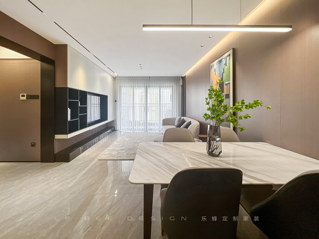 現(xiàn)代簡約風的裝修正在成為越來越流行的選擇。這種裝修風格可以呈現(xiàn)簡約自然、溫馨舒適以及大氣高級的效果。本案的業(yè)主是一個五口之家,家中有一個3歲的寶寶,女主人的父母也一同照顧小寶寶,使整個家庭充滿了溫馨和幸福的氛圍。為此,在材料的選擇上,專注于使用環(huán)保的材料,避免了尖銳鋒利的材質(zhì)。業(yè)主喜愛現(xiàn)代簡約風的裝修,他們認為這種風格會使家里呈現(xiàn)出干凈整潔的狀態(tài),更易于打理和收納。業(yè)主鐘情于暖色系,設計師選擇了以暖灰色系為主題色調(diào),并運用木飾面、巖板以及大理石等材料,讓整個空間散發(fā)出溫馨而自然的氛圍。