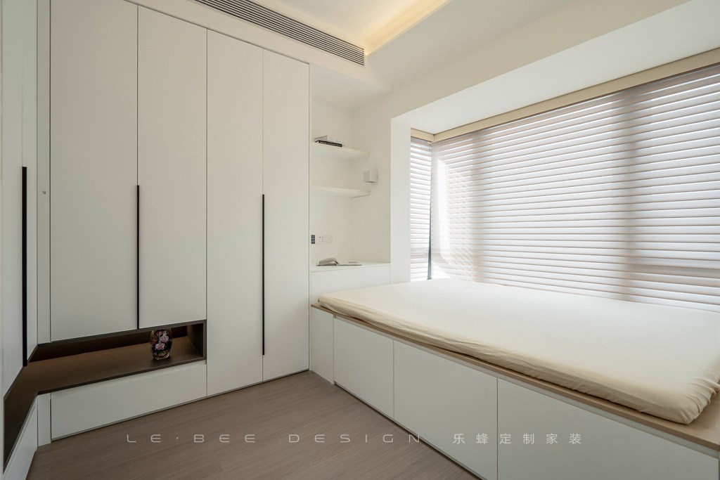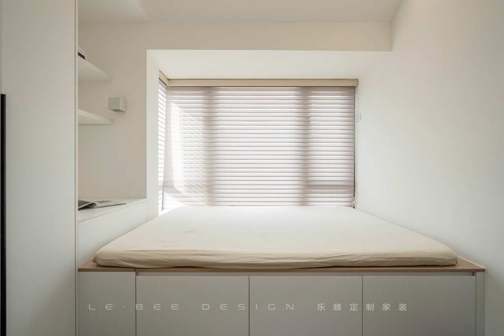 榻榻米床設(shè)計(jì)讓儲(chǔ)物空間更多,百葉窗設(shè)計(jì)使光線調(diào)節(jié)更加方便。