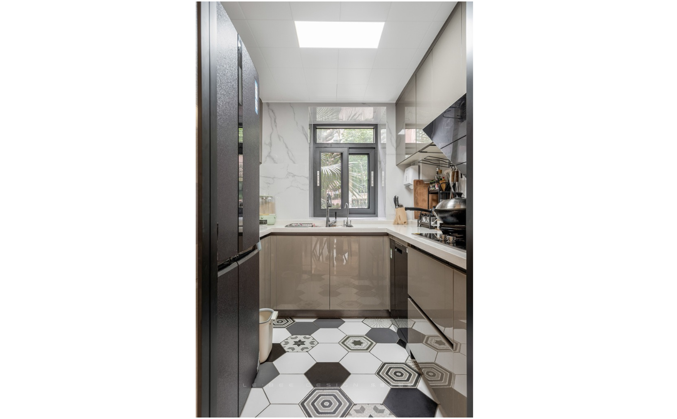 本案為3口之家,戶型較方正,老人偶爾過來小住,由于業(yè)主有二胎的考慮,所以希望改造為四房的結構。業(yè)主夫妻都很熱愛生活,不跟風,做自己喜歡的,尋求同類,不為了擺布而擺布,不刻意陳列,每個地方都充滿生活氣息,讓家裝滿家庭回憶,因此選擇現代簡約風格來裝修。色調用到:黑白灰、咖、古銅。材料用到:巖板、古銅色不銹鋼、藝術玻璃、格柵紋,裝修出一個獨一無二的家,讓我們一起去看看吧!