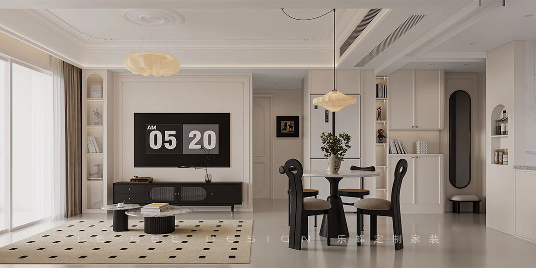 電視背景墻簡(jiǎn)簡(jiǎn)單單,被不落俗套的少女粉包圍。金屬質(zhì)感的法式草帽燈、蓬松柔軟的云朵椅都是非常有浪漫質(zhì)感的點(diǎn)綴。 客廳空間寬敞,沙發(fā)也可以選擇不靠墻擺放。將沙發(fā)墻打造成玄關(guān)柜和邊柜。不僅豐富了客廳的儲(chǔ)藏空間,也讓家變的更簡(jiǎn)潔美觀。