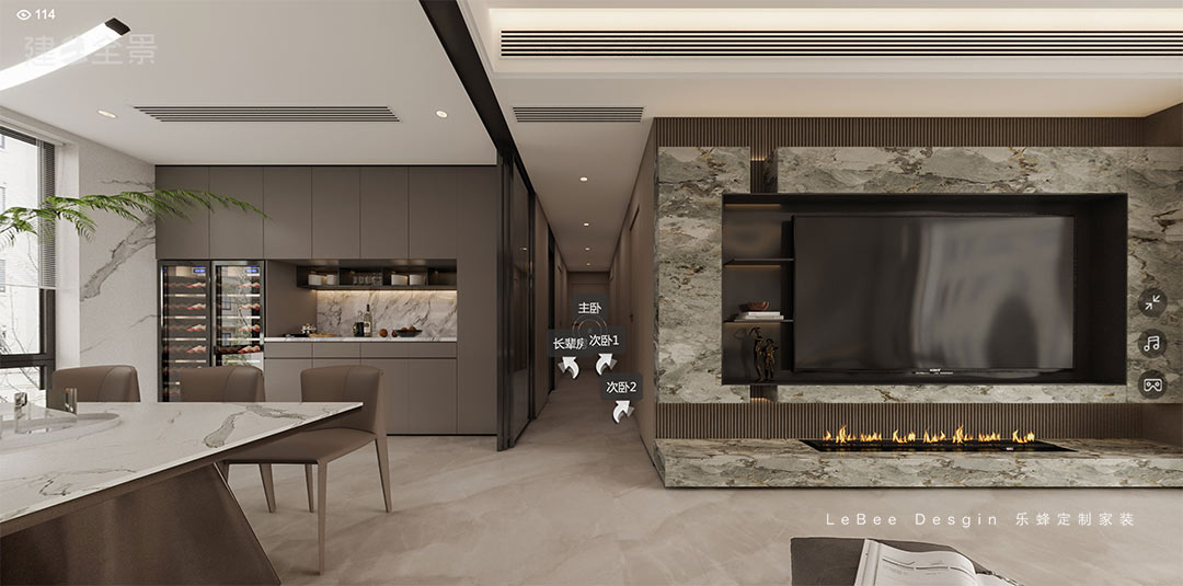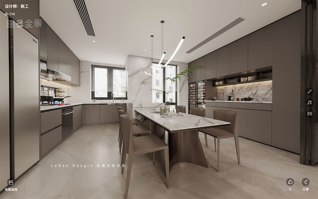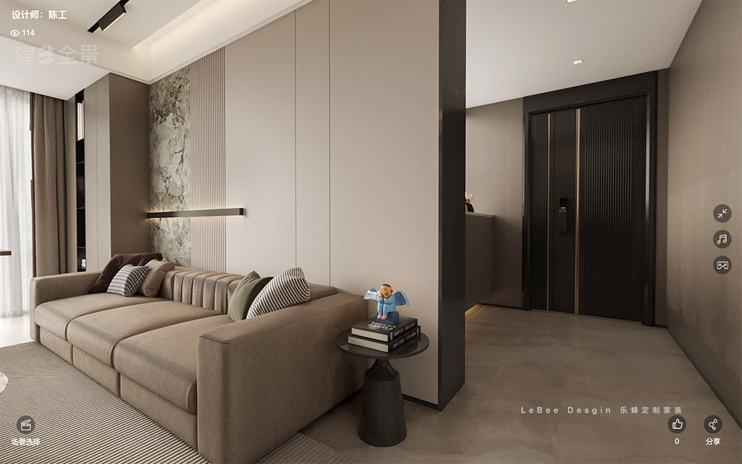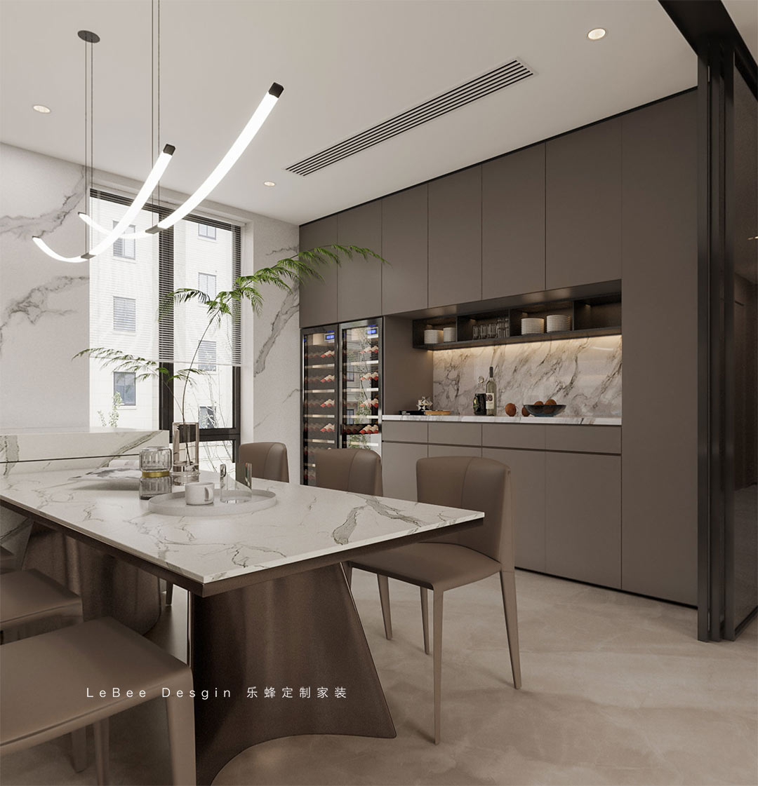 整個(gè)空間采用開(kāi)放式的格局,通過(guò)黑白灰關(guān)系來(lái)講室內(nèi)的氣質(zhì)升華,用深色的石材和金屬來(lái)進(jìn)行輔佐,讓空間更加有節(jié)奏和干練。開(kāi)放式的布局讓此處空間擁有了更加高調(diào)的格局,游走在室內(nèi)的除卻一些精美的藝術(shù)家具以外,還有各類材質(zhì),材質(zhì)之間的不同質(zhì)感交相融合,打造了獨(dú)屬于此處的豐盈美感,黑白灰三色的融合,恰好足以詮釋空間的優(yōu)越質(zhì)感。乍一看,空間的柔和似乎是與生俱來(lái)一般,實(shí)則在這之中一直蘊(yùn)藏著設(shè)計(jì)師的小心機(jī)。