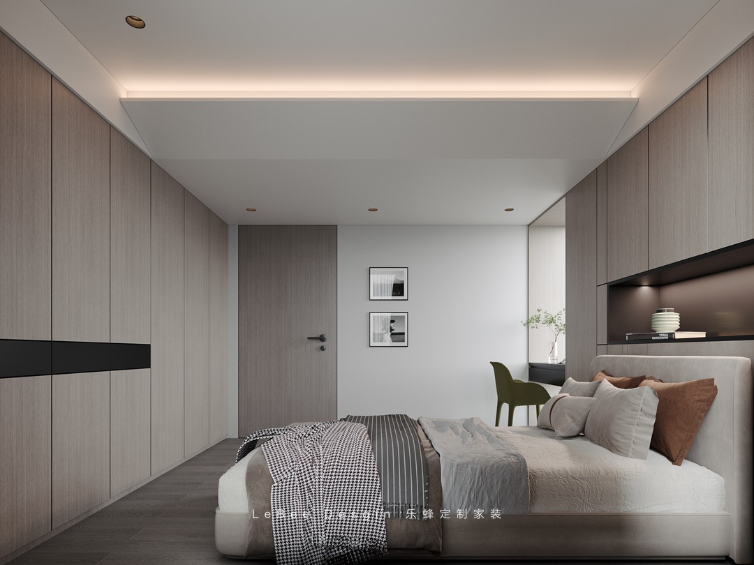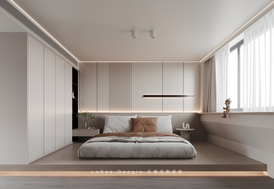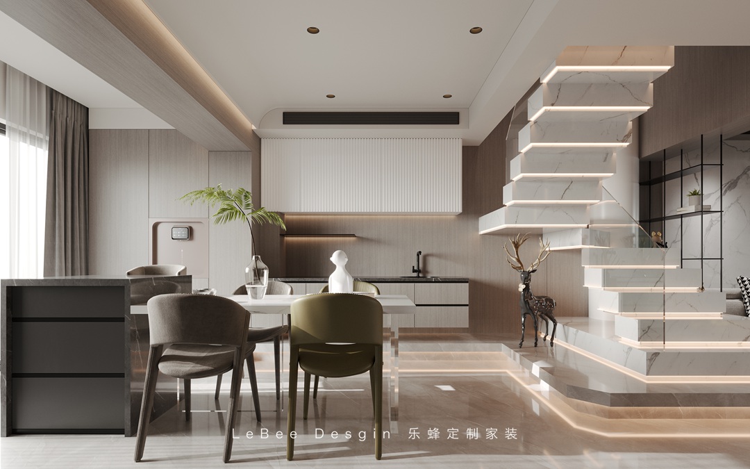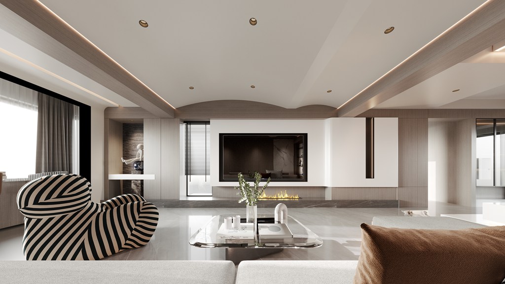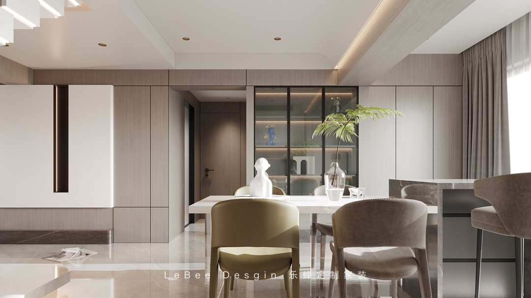 相較于色彩對比強(qiáng)烈的前衛(wèi)個(gè)性風(fēng),本案設(shè)計(jì)師遵循現(xiàn)代簡約的生活方式,以奶油+淺咖色彩塑造整個(gè)空間,散發(fā)著柔和的溫潤質(zhì)感,打造一隅純粹治愈的生活家。