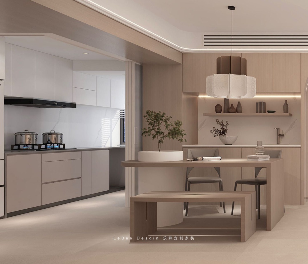 本案例設計風格為詫寂奶油風格,從原先業(yè)主一開始喜歡的侘寂風格,慢慢的一起討論演變成了混奶油風的效果,實現(xiàn)了業(yè)主的溫馨舒適體驗感。將現(xiàn)代主義和極簡主義進行了融合和運用。將現(xiàn)代性與傳統(tǒng)藝術相結(jié)合而創(chuàng)造出一種新的美學風這種風格比較接近自然的本真,以物為形來營造空間,沒有繁瑣復雜的裝飾;使用自然的材料的形狀。在現(xiàn)代設計中體現(xiàn)一種不被打擾的靜謐生活方式