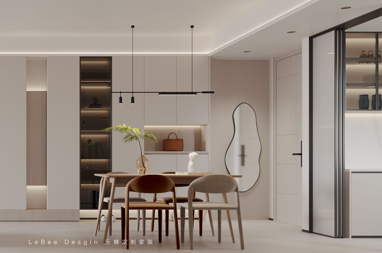 本案是一套92㎡的房屋,是小兩口的婚房,目前沒有小孩,屋主希望空整體空間能盡量開闊,自然采光很重要,在滿足屋主基本功能需求的同時(shí),還要呈現(xiàn)出寫意的二人世界、溫馨的生活質(zhì)感。 這一套我們整體以恬靜溫柔奶油色為主色調(diào),搭配柔和的米色、灰色等,營造出溫馨治愈的氛圍,自帶“溫柔軟糯”的濾鏡,運(yùn)用大量的弧形元素,優(yōu)雅的圓拱造型,弱化空間里的尖銳棱角。