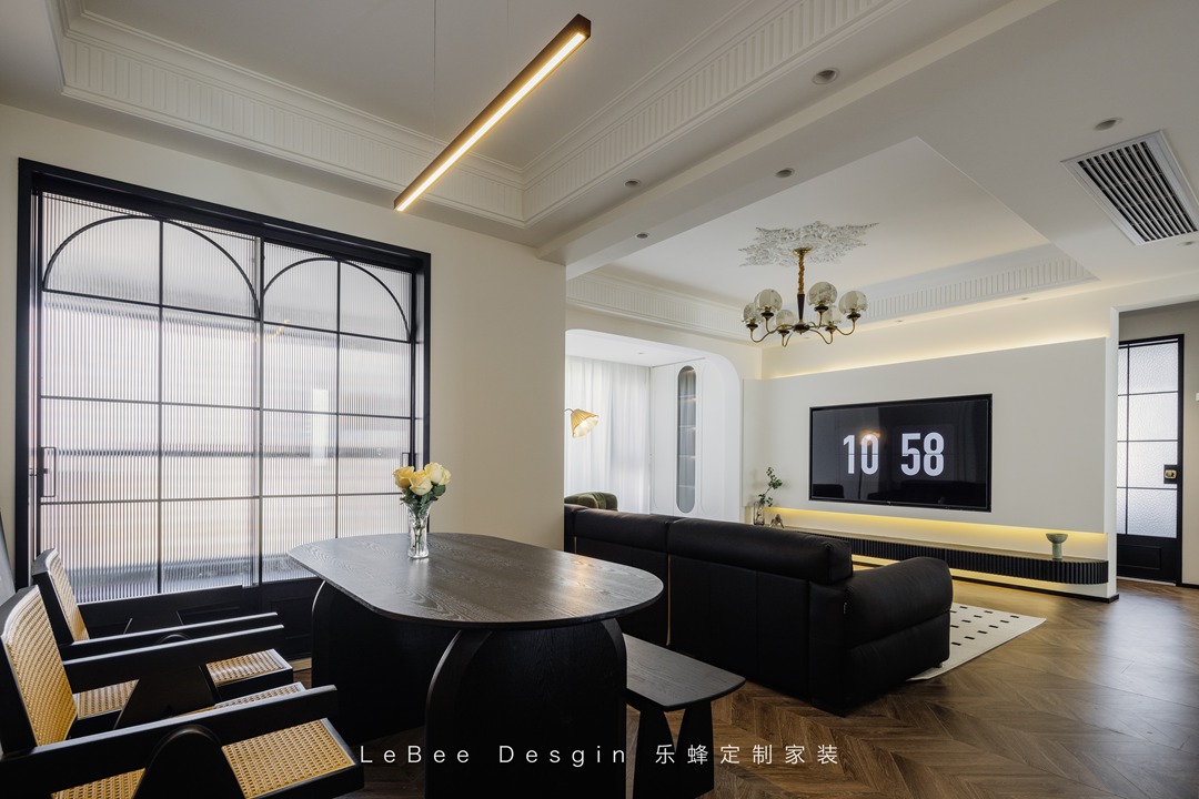 客廳區(qū)域采用大面積開放式設(shè)計,大面積窗戶,還有結(jié)合中古元素的現(xiàn)代家具燈具,再搭配一些現(xiàn)代感強烈的椅子等,營造出別具一格的居家氛圍。