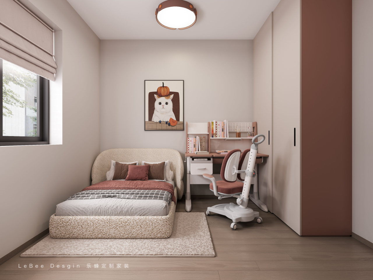 案位于深圳金貝苑小區(qū),業(yè)主是一位熱愛生活的寶媽。由于家里小孩較多,出于對(duì)收納的充分考慮,整體設(shè)計(jì)以收納為主。 在風(fēng)格上,選擇了溫馨暖人的奶油風(fēng)作為主色調(diào),客廳采用柔和的奶油色墻面,搭配淺木色地板、米咖色收納柜,展現(xiàn)出自然溫馨的氛圍。