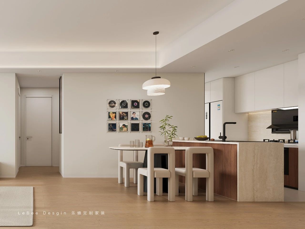 以胡桃木作為主色調(diào),摒棄繁雜裝飾,營造出簡潔而溫馨的居住氛圍。