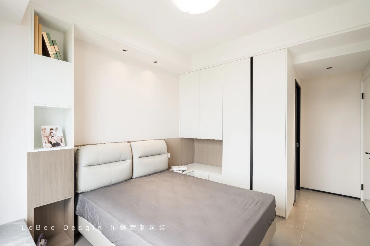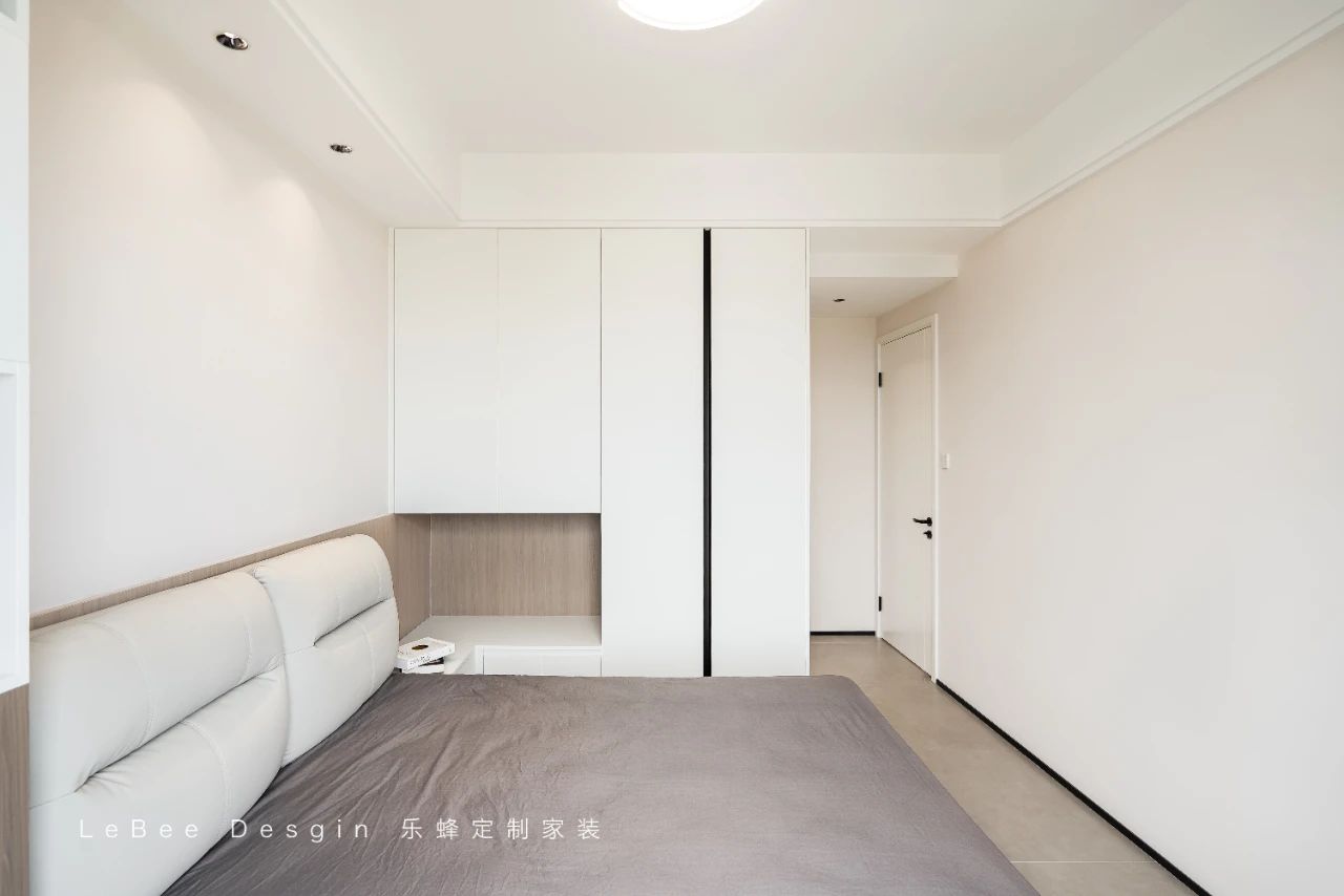 主臥以灰色系系為基調(diào),為空間注入了沉穩(wěn)與寧?kù)o。