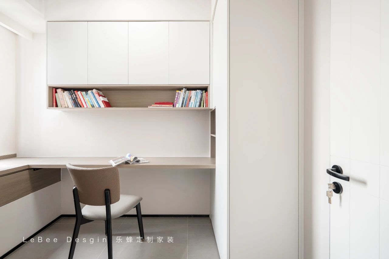 書(shū)房是一個(gè)安靜的空間,白色的書(shū)架與書(shū)桌搭配,簡(jiǎn)潔大方。
