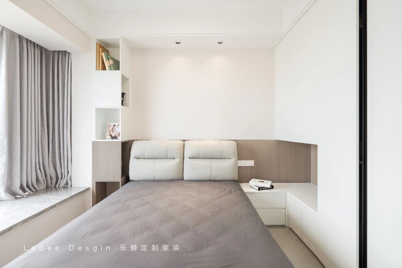 色系搭配統(tǒng)一,地面、墻面、全屋定制的顏色相互呼應(yīng),墻頂通刷乳膠漆,高級(jí)感撲面而來(lái)。純色窗簾、極簡(jiǎn)家具讓家更加簡(jiǎn)潔,營(yíng)造出一種寧?kù)o舒適的氛圍。