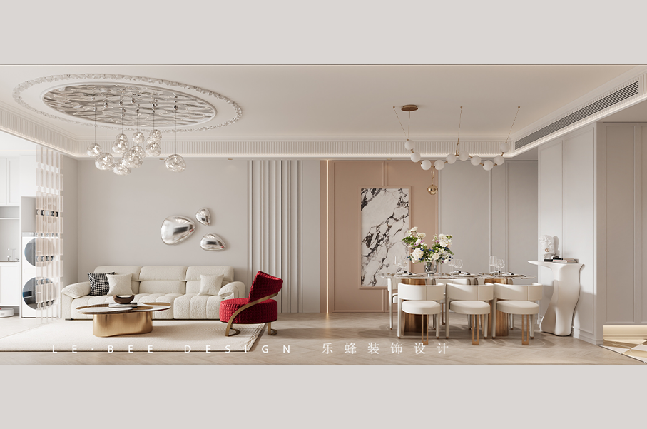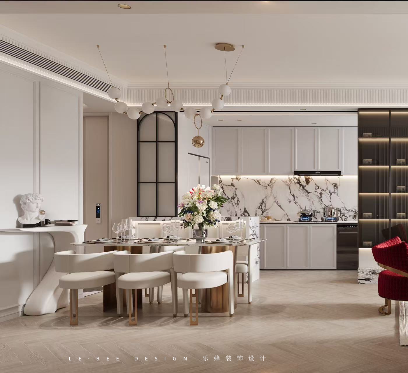 這是一套120㎡的大戶型,采用現(xiàn)代簡約與輕奢風(fēng)融合,以簡潔流暢線條勾勒空間輪廓,通過精致細(xì)節(jié)與高檔材質(zhì)彰顯奢華質(zhì)感 ,營造出既時(shí)尚大氣又不失溫馨舒適的居住氛圍。 大量使用大理石,如廚房背景墻,憑借其天然紋理與光澤提升空間質(zhì)感;搭配金屬元素(如家具腳、燈具裝飾等) ,展現(xiàn)精致與時(shí)尚;還有玻璃材質(zhì)(如柜門、燈具),增加空間通透感與輕盈感。